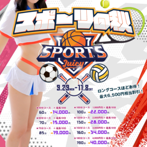 本指名料(会ったことのある子を指名)2,000円※「スポーツの秋」のご予約は、電話予約は朝8時30分より、WEB予約は朝9時より受付いたします。