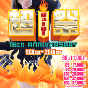 ★祝16周年★60分11,000円で遊べる7日間★11/9~11/15『超ジューシー祭』開催★